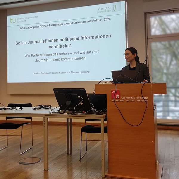 Bei der Jahrestagung der DGPuK-Fachgruppe „Kommunikation und Politik“ in Hamburg präsentierte die IJ-Forschungsgruppe „Journalismus & Demokratie“ neue Erkenntnisse zum Verhältnis von Politik und Medien. Die Ergebnisse zeigen: Politiker:innen erwarten mehrheitlich, dass Journalist:innen politische Informationen vermitteln – doch Kommunikationswege und Einstellungen unterscheiden sich je nach Partei deutlich.